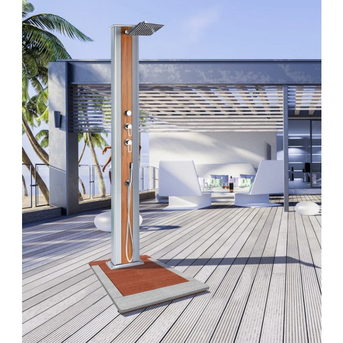 Ce caillebotis en composite imitation bois de haute qualité est parfait pour accompagner votre douche Formidra. Il sera très utile pour vous rincer avant et après une baignade dans la piscine. Ainsi, l’utilisation du caillebotis permet de préserver l’hygiène de l’eau de la piscine. L’eau s’écoulera par le dessous, ce qui permettra à vos pieds de rester propre.
