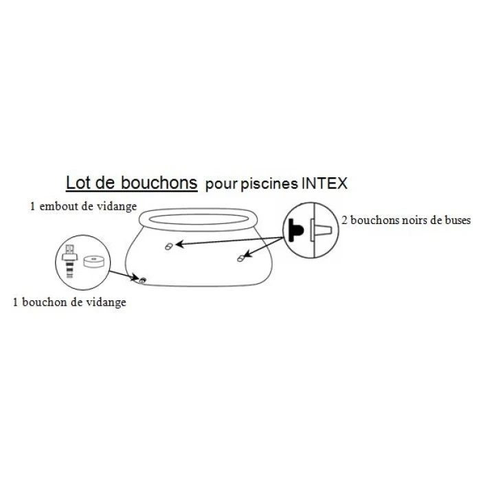 Lot de bouchons pour piscines INTEX + adaptateur de vidange