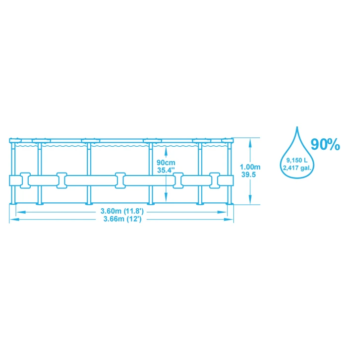 Ce matériau de première qualité utilisé pour la conception des piscines hors-sol Bestway est également traité anti-UV et peut supporter des conditions extrêmes dont l’exposition au chlore. De plus, il a été testé pour résister à la pression d’un volume d’eau très important.