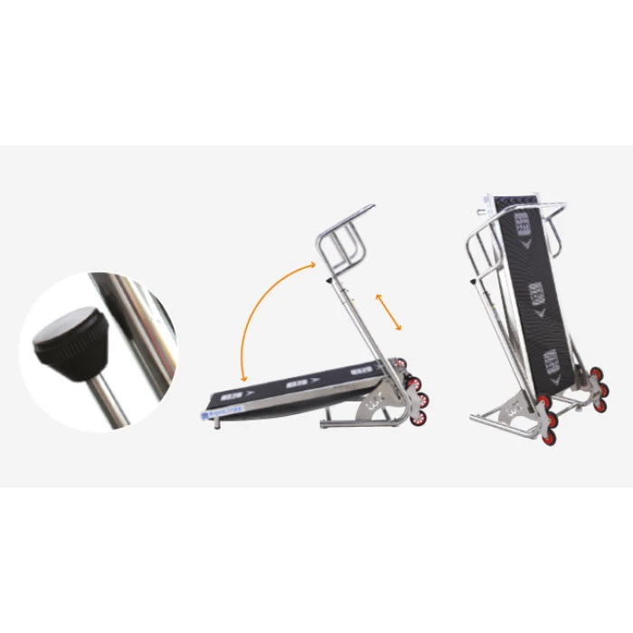 Le tapis défile sous les pieds de la personne qui marche et résiste grâce à une résisitance hydraulique réglable selon le niveau d’effort qui est voulu. Le réglage se fait via une molette sitée sur la droite de la barre de maintien.